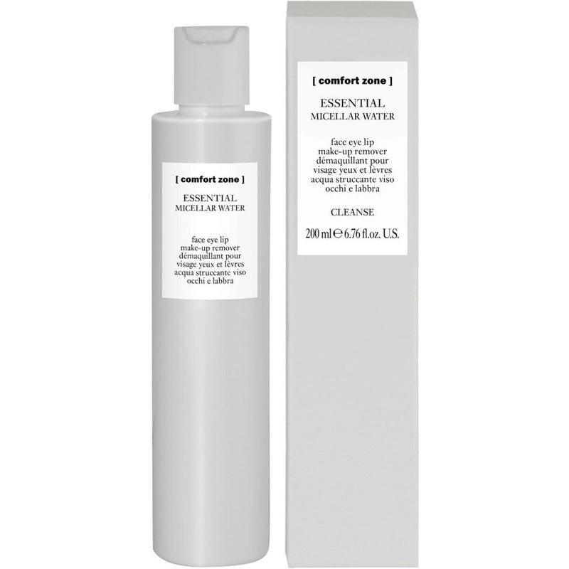 Das Essential Micellar Water von Comfort Zone ist ein echtes Multitalent für die tägliche Reinigung. Die Mizellen-Technologie umschließt sanft Make-up, Schmutzpartikel und Talg und entfernt diese gründlich – ganz ohne Reiben.
